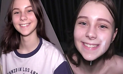 Adorable teen with xxl natural boobs enjoys having sex with old man
