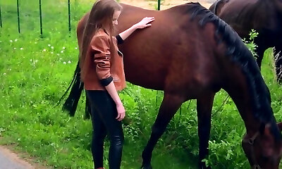 Long haired brunette Luna Rival bends over and takes giant fuck-stick in her twat