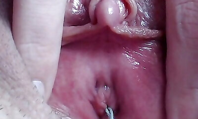 Extreme closeup masturbation with huge clitoris wet climax