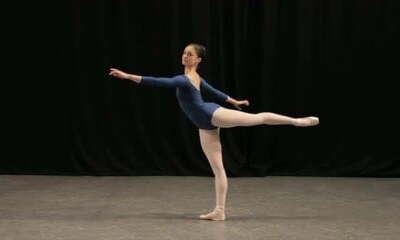 Ideal beauty ballerina Annett A with a lithe magnificent female body poses for me in a black stage costume. T-2(6)