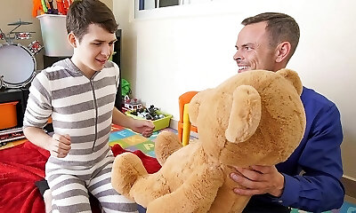 Twink Stepson And Stepdad Family Threesome With Stuffed Bear