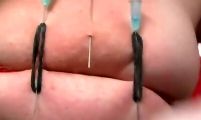nippleringlover - insane milf pumping pierced nipple for milk, extremely stretched nipple piercings