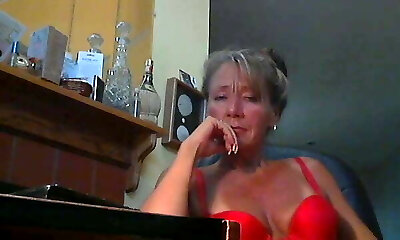 Best brunette MILF with humungous tits smoking and posing in front of the webcam