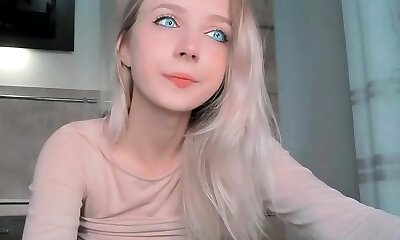 Jaw-dropping and tender Russian blonde young camgirl posing in front of the webcam