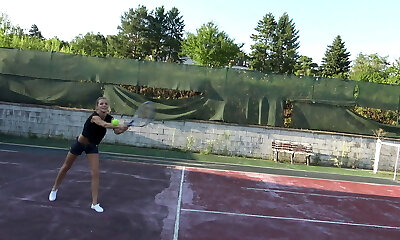 Hot and sexy blonde slut sucks a hard cock so fine from the boxing ring before letting him fuck her pussy in many positions