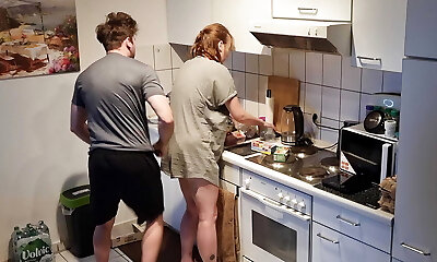 German grandmother get hard fuck in kitchen from step son