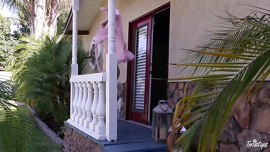 Nympho living nextdoor Riley Reid gives a deep throat in the doorway and invites to visit her beaver