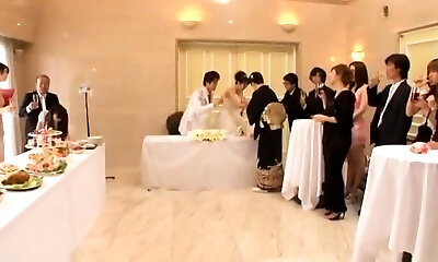 The three brunette hotties love sharing his huge Chinese cock during hardcore group sex session