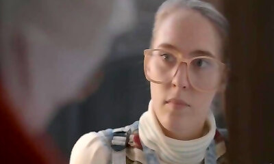 Rude redhead boss takes advantage of her submissive girl-on-girl employee by ramming her with a strapon