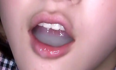 How my sister-in-law Zhoe enjoys getting spunk in her mouth...would you like to cum too?Slow mobility cum